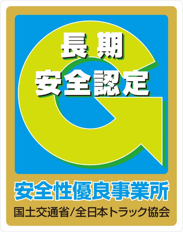 当社は、公益社団法人 全日本トラック協会が認定する「Gマーク(安全性優良事業所)」を取得しています。これは、交通安全対策や法令順守の取り組みが優れている事業所として認められる制度です。